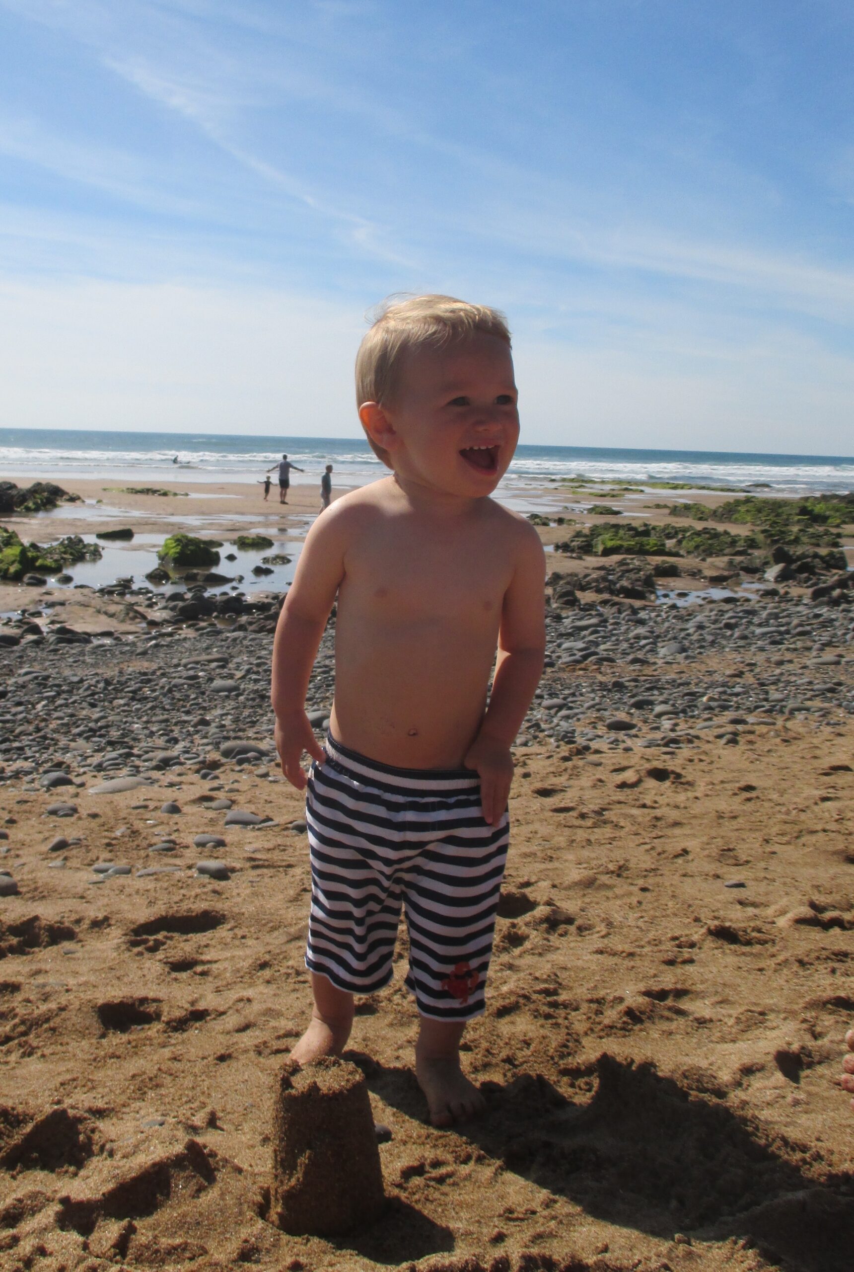 We booked a caravan on the family-friendly site of Sandymouth Holiday Resort which is set in North Cornwall and has plenty of onsite facilities which include a shop, a play area, bar and restaurant, an indoor swimming pool and plenty of green space for playing games. Just down the road is Sandymouth Beach which stretches for 2 miles down to Bude. With its golden sand, beautiful scenery and perfect waves for surfing/bodyboarding, it is the perfect place for the whole family to enjoy. We enjoyed the holiday so much that we returned to the same caravan park and the same caravan the following year when Jake was 18 months old.