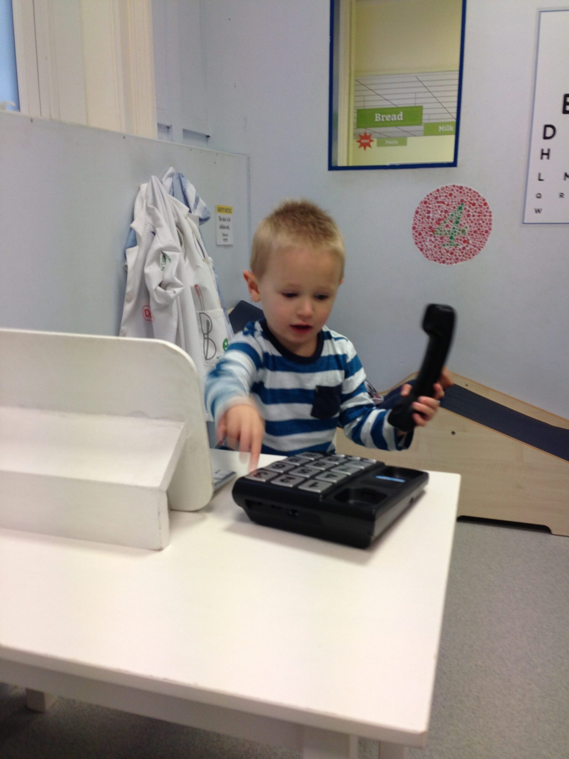 The supermarket was a very popular place for all the children. With child-sized trollies, baskets and the shelves stocked with all sorts of items they were all very involved in there. Shopping lists are available to use to help your child make the right selections from around the supermarket. A great way for them to explore their surroundings, recognise items and practise counting.