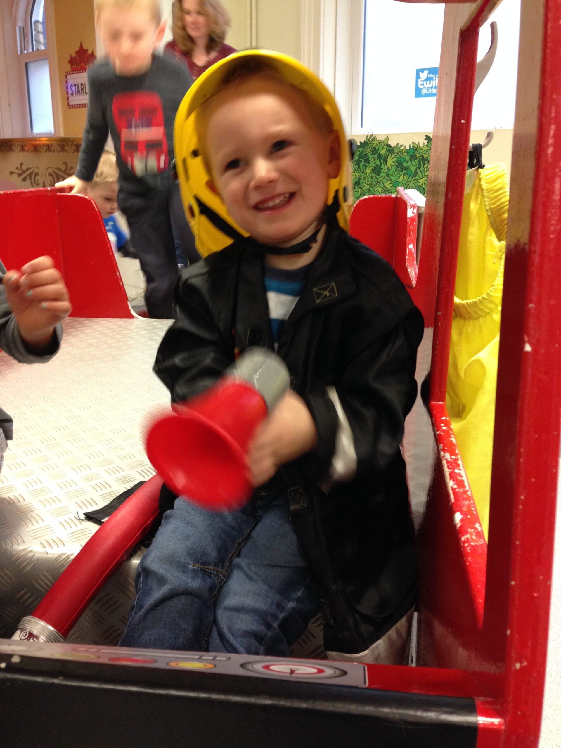 The fire engine was a huge hit too. He is now into Fireman Sam so to be able to dress up as the man himself was a real treat. Hats, fireman coats, a megaphone, fire extinguisher and hoses are all provided.