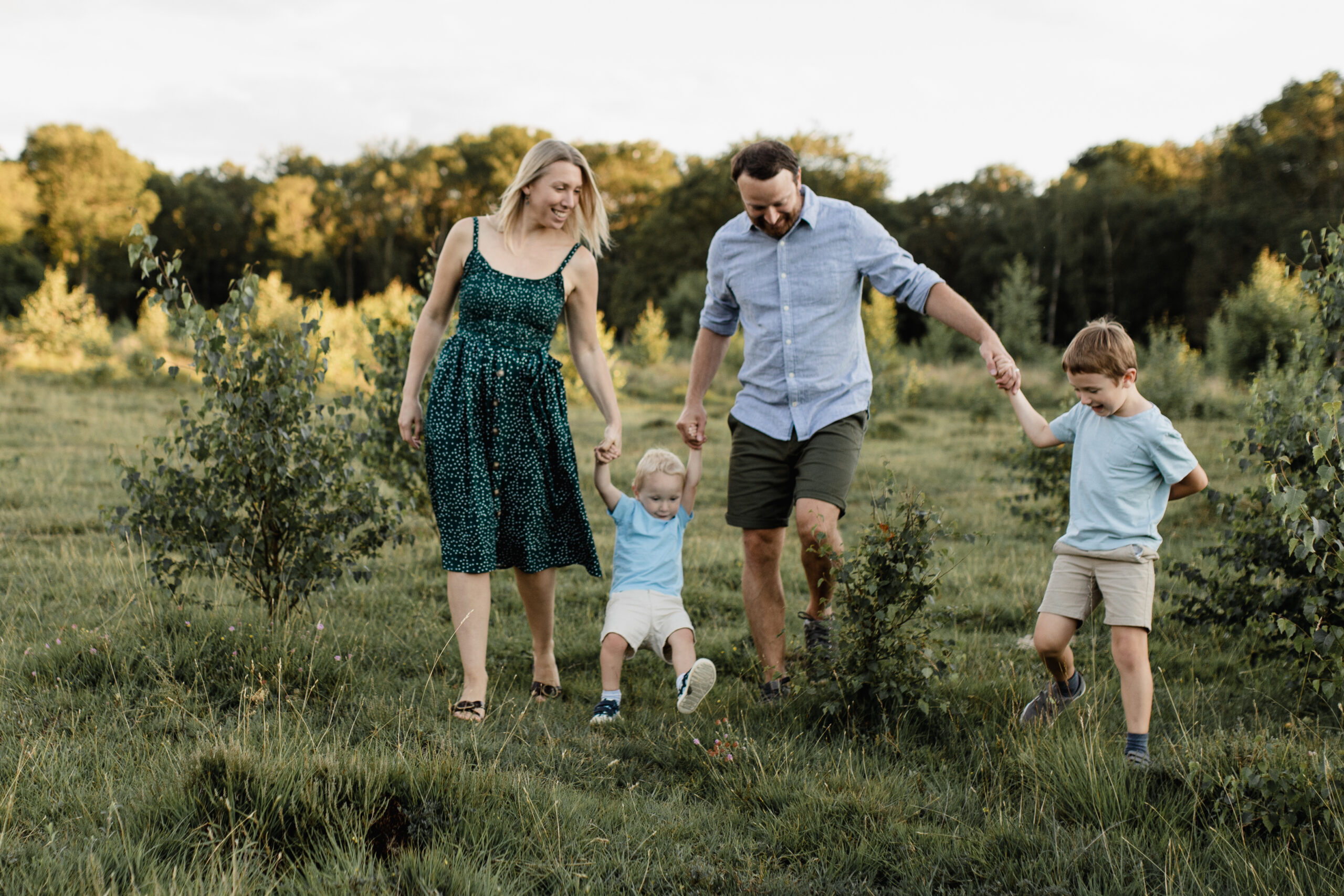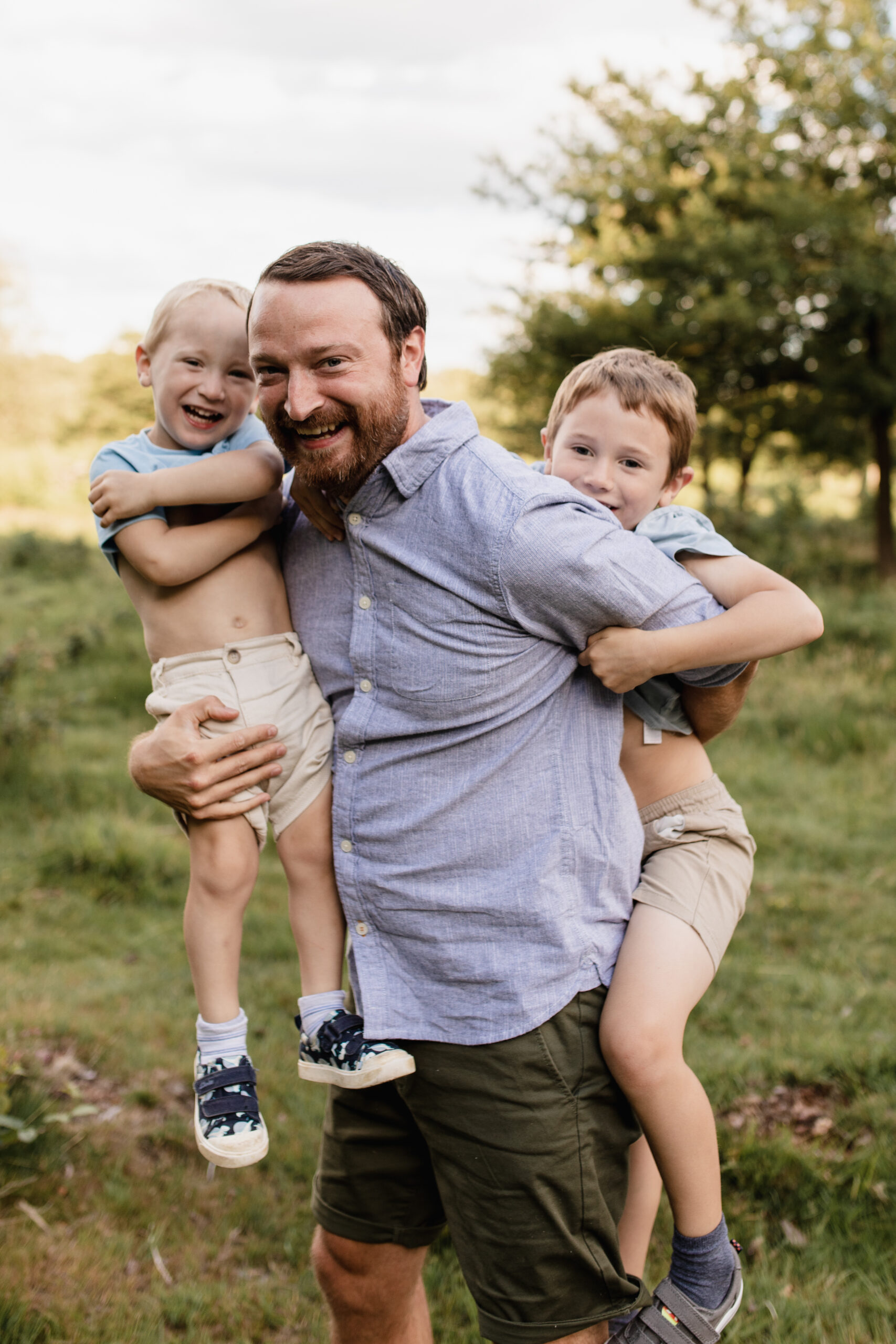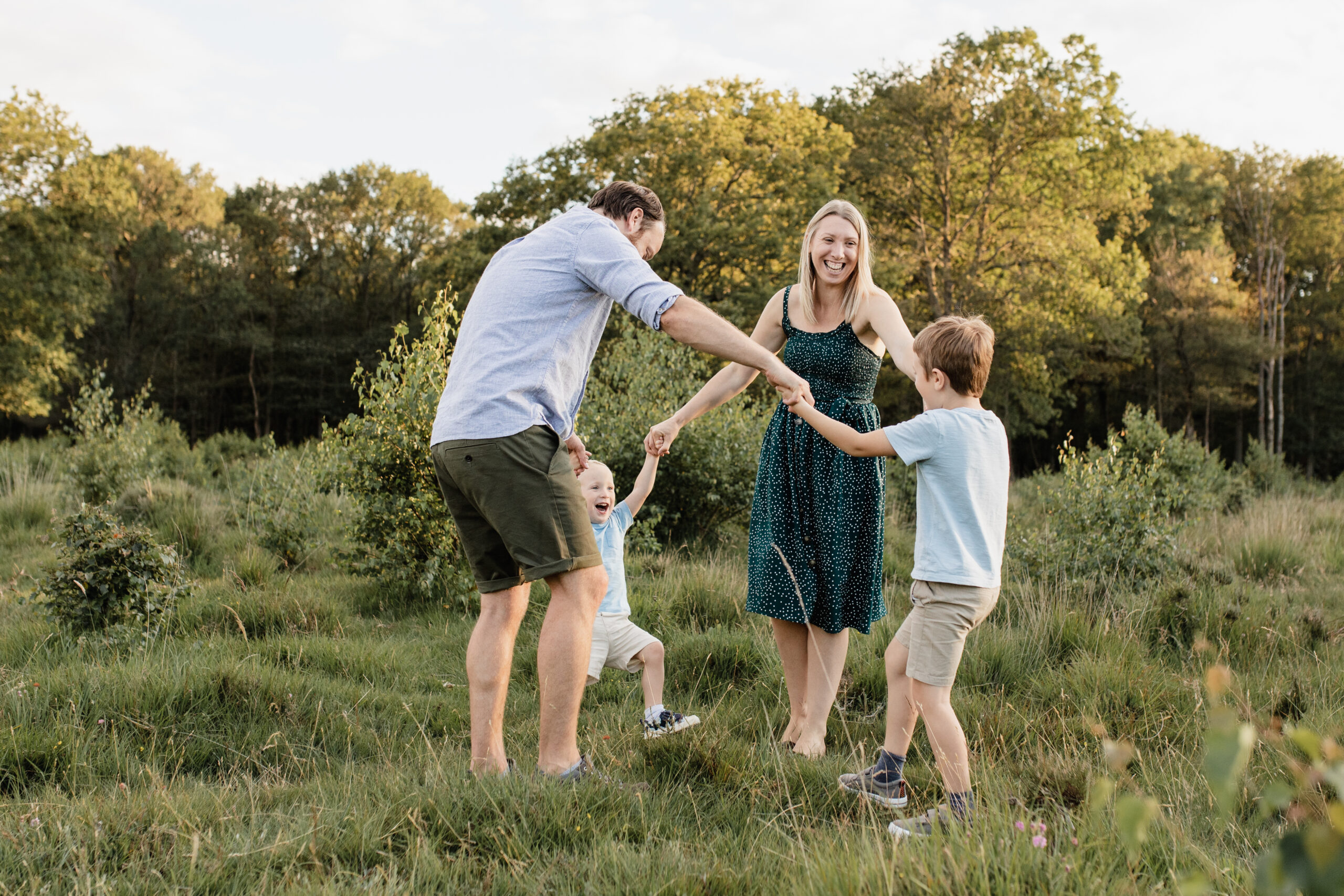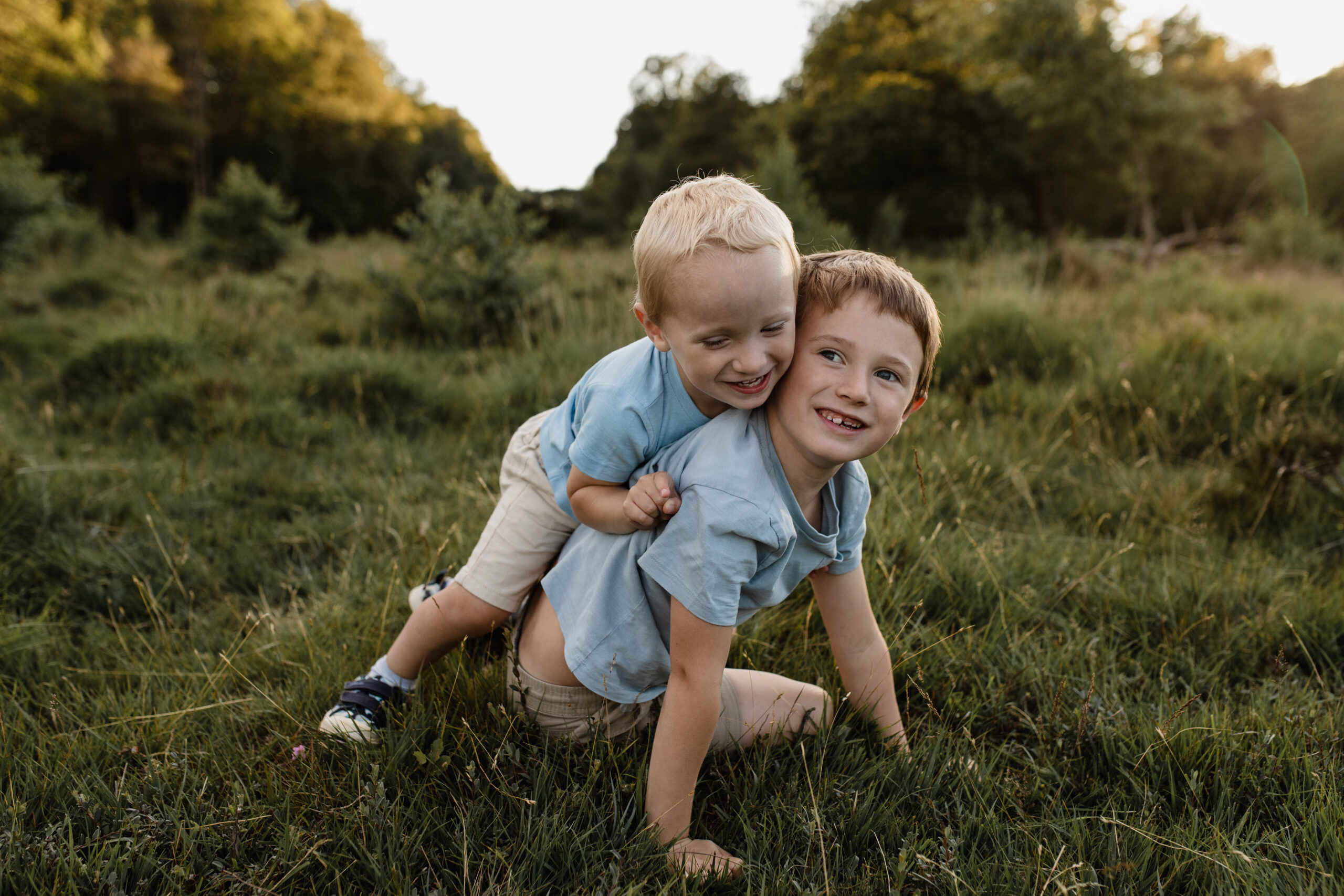 As the shoot went on, we moved around the heath to always ensure that we always had the best light. Ewa chose the golden hour (when the sun is going down) in order to get a great effect in the pictures but to also prevent us all from squinting. Now, due to this, we were out later than we would usually be with the children and it was past their bedtime. I wanted to bring this up because this was my main worry for the shoot– tired and niggly kids who wouldn’t play ball! We, therefore, had spent the day just chilling at home with the TV and slow play. We didn’t want to wear them out for the evening and we certainly didn’t want any new accidents (William!) This really did seem to help come the photoshoot, I mean I’m not going to say they didn’t have their moments, they certainly did, but Ewa took it all in her stride. She continued to chat to the boys, to make them laugh– Jake particularly liked it when she was getting him to come up with silly names– and she snapped them getting up to their cheekiness. She reassured me that they were absolutely fine and to continue to enjoy it all.
