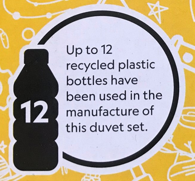 The bedding set they have come up with has used up to 12 recycled plastic bottles which means those bottles have been reused rather than sent to landfill.