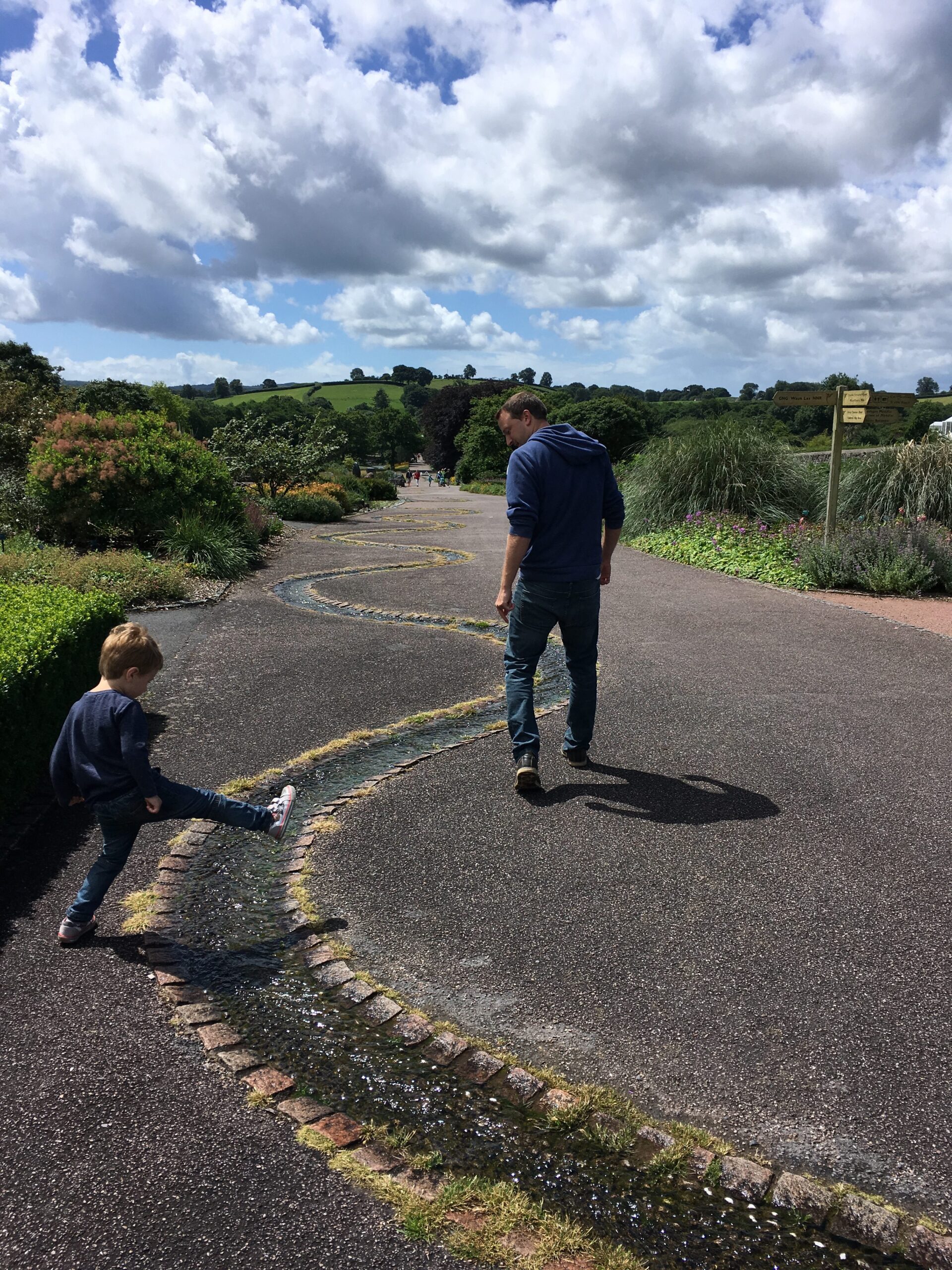 Jake is pretty obsessed with water and he had already spotted the amazing stream of water that runs down the main path of the gardens. So, once back and after a quick afternoon drink we went to admire this fabulous waterworks which curve down the path and lead to different small ponds but then the channels allow the water to move out and to another pond and so on until it circles around into this fountain at the bottom.