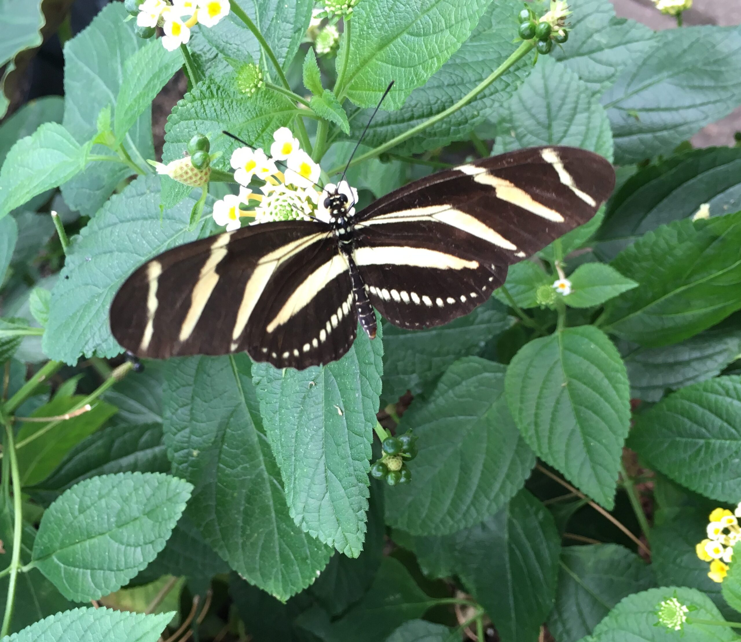 Back inside the butterfly house, I couldn’t believe it when a butterfly with transparent wings flew past me and took a rest on the food table.