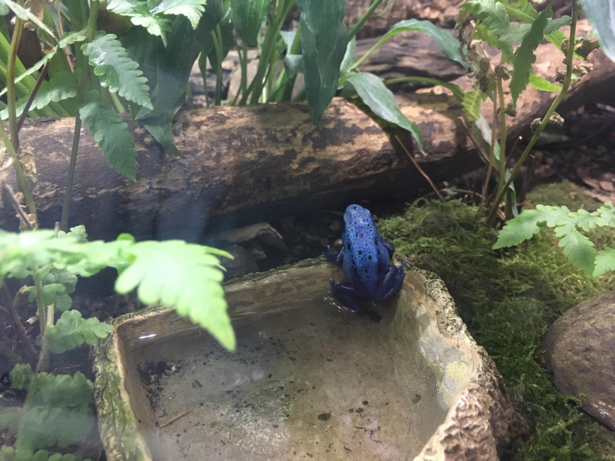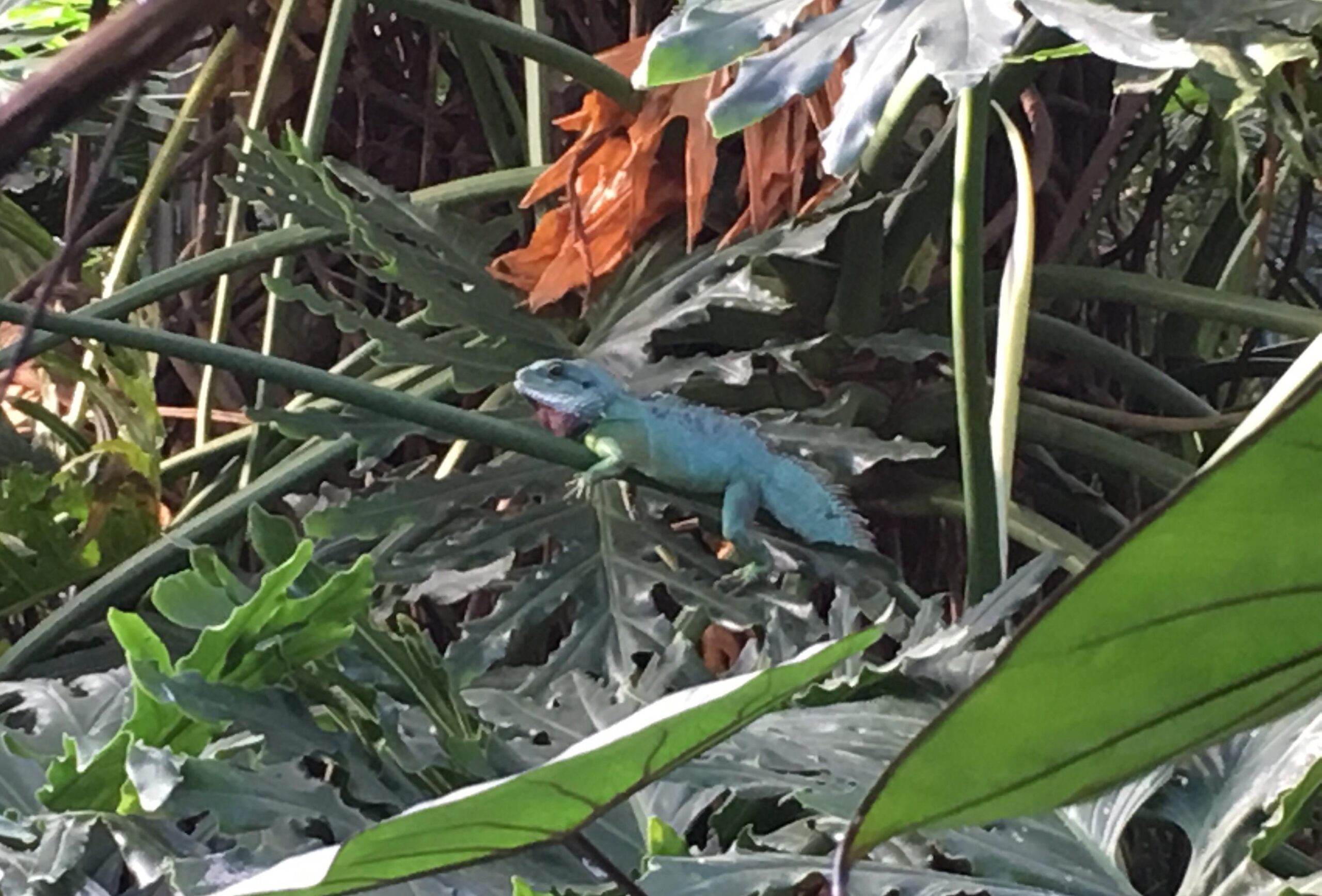 The path in the first warm greenhouse takes you through a jungle of plants, unusual flowers and creatures, including blue poison dart frogs.